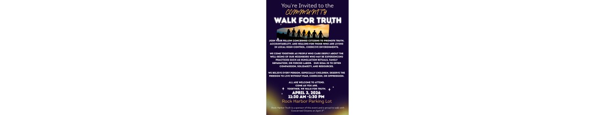 Participants are invited to gather at the Rock Harbor parking lot beginning at 11:30 AM. The event will include walking loops in the parking lot and opportunities for community members to connect and share resources. Participants of all abilities are welcome, and those who prefer not to walk are encouraged to bring a chair and take part.